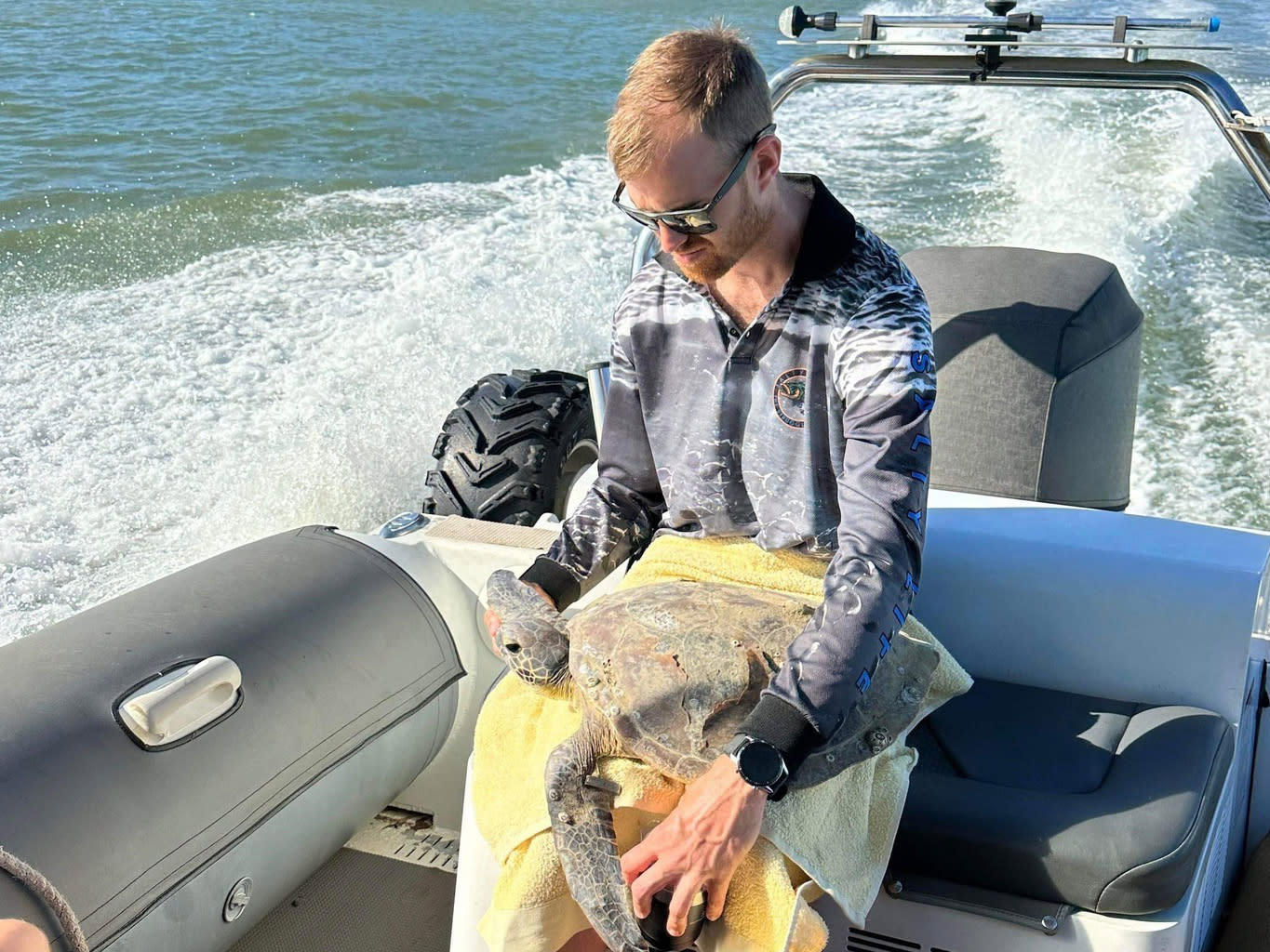We participate in Containers for Change who collect our recycled cans and bottles from the Dealership, we have 2 change bins and an automatic direct donation is then given to the Quion Island Turtle Rehabilitation Centre. Our Service Manager, Blake Arthur shared a photo of a rescue he was involved with.